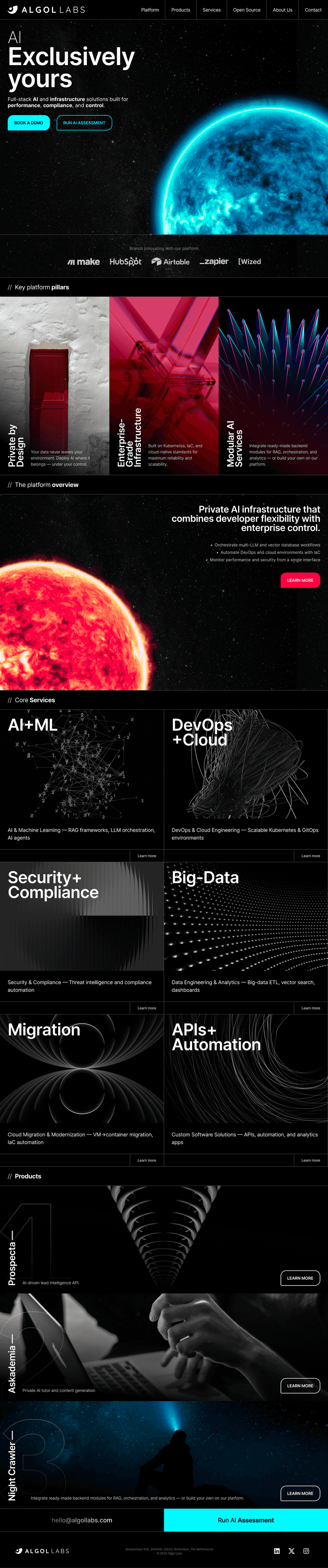 Full-stack AI and infrastructure solutions built for performance, compliance, and control.